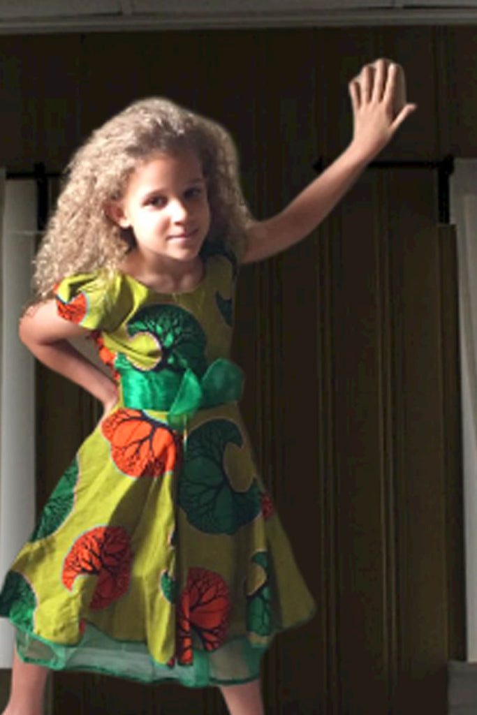 • The Afua kids dress is perfect for your kids this summer. It's very comfortable. The beautiful Print Ankara fabric used is 100% cotton, gentle on the skin and is easily dry cleaned.