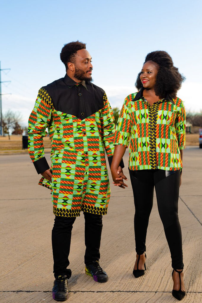 This is another incredible duo design that you must get for your partner, husband, wife, friend or fiancé. It is an African print fabric that will get admiration from friends and families.
