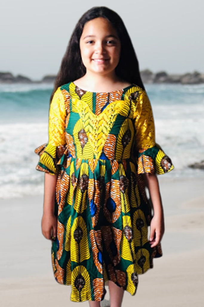 The Hassana kids dress is perfect for your kids this summer. It's very comfortable. The beautiful Print Ankara fabric used is 100% cotton, gentle on the skin and is easily dry cleaned.
