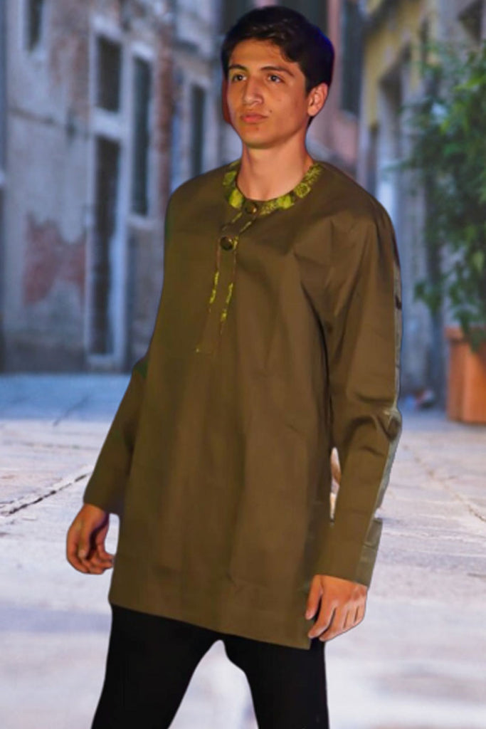 Abiodun: African Print Fabric Long Sleeve Shirt For Men
